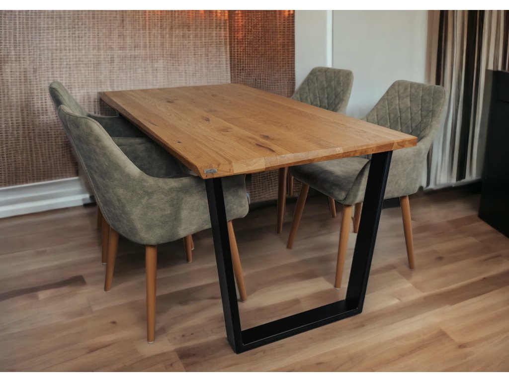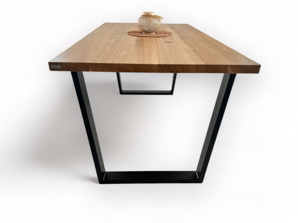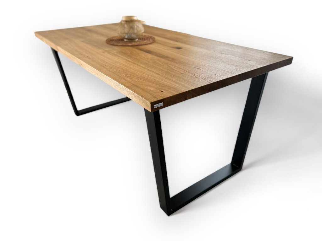 Der Esstisch Paris ist eine praktische und stilvolle Ergänzung für jedes Zuhause. Die Tischplatte ist aus handgefertigter Eichenfugenplatte mit einer Stärke von 40 mm gefertigt. Die Höhe des Tisches beträgt 760 mm und hat, wie alle unsere Produkte,